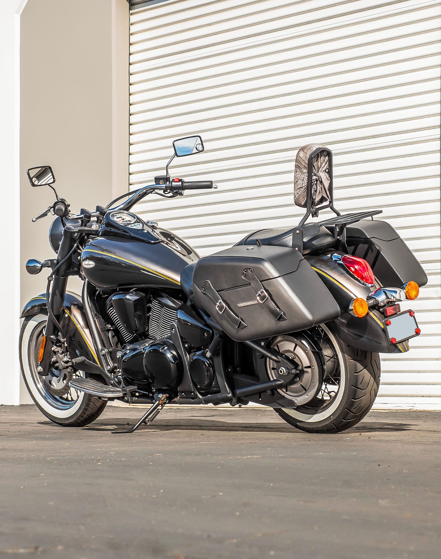 42L - Baldur Extra Large Kawasaki Vulcan 900 Classic VN900 Leather Wrapped Motorcycle Hard Saddlebags