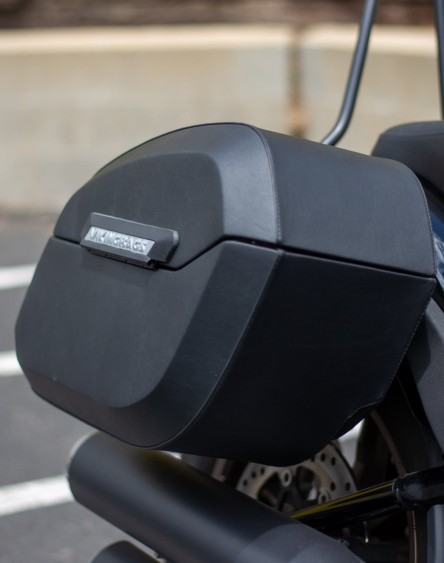 32L - Darkin Large Quick Mount Leather Wrapped Hard Saddlebags for Harley Softail Low Rider S FXLRS