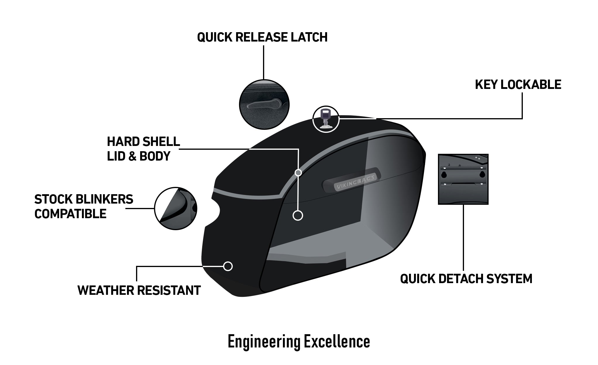 • Note: Turn signal cut-out fits OEM signals on 2020–2024 models. The bag is not compatible with 2025 model.