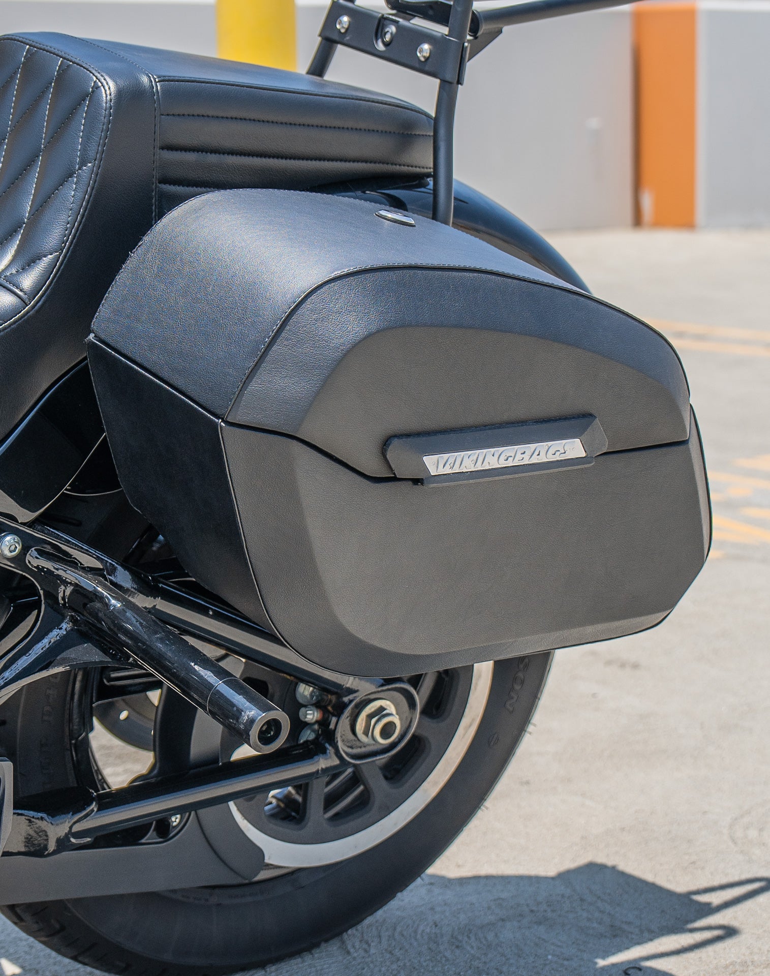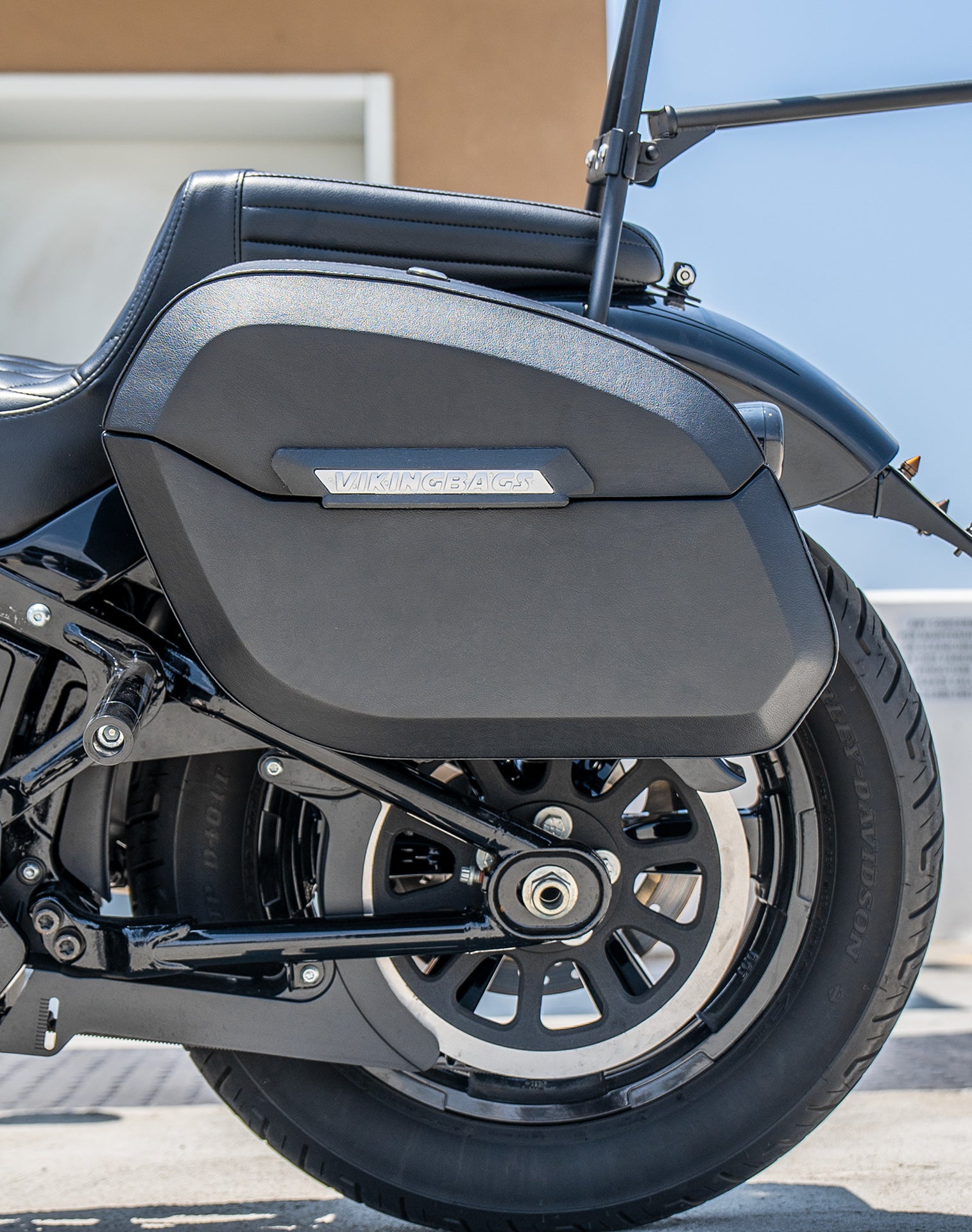 32L - Darkin Large Quick Mount Leather Wrapped Hard Saddlebags for Harley Softail Street Bob FXBB