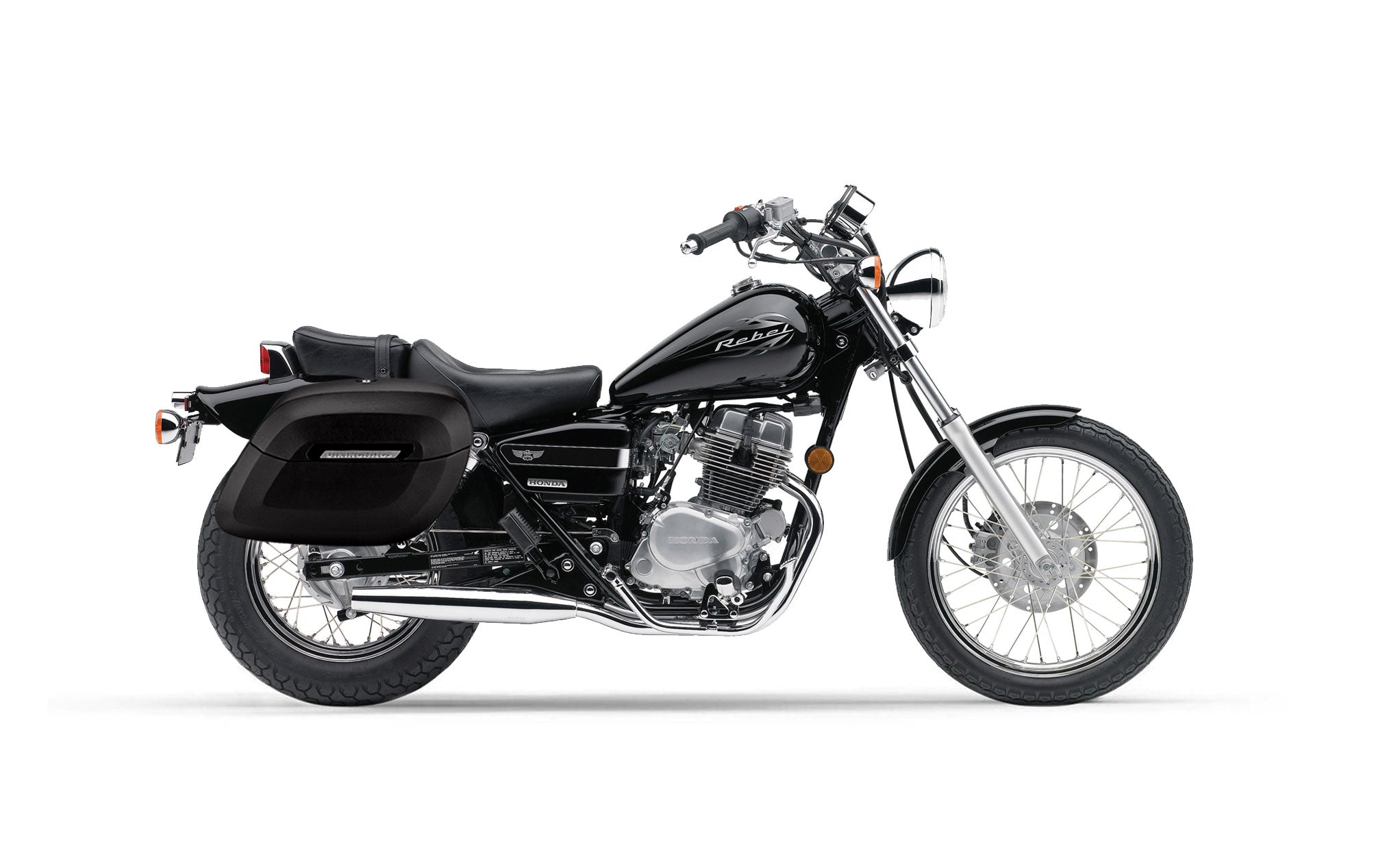 36L - Lamellar Raven Extra Large Honda Rebel 250 CMX250C Shock Cut-out Leather Covered Motorcycle Hard Saddlebags