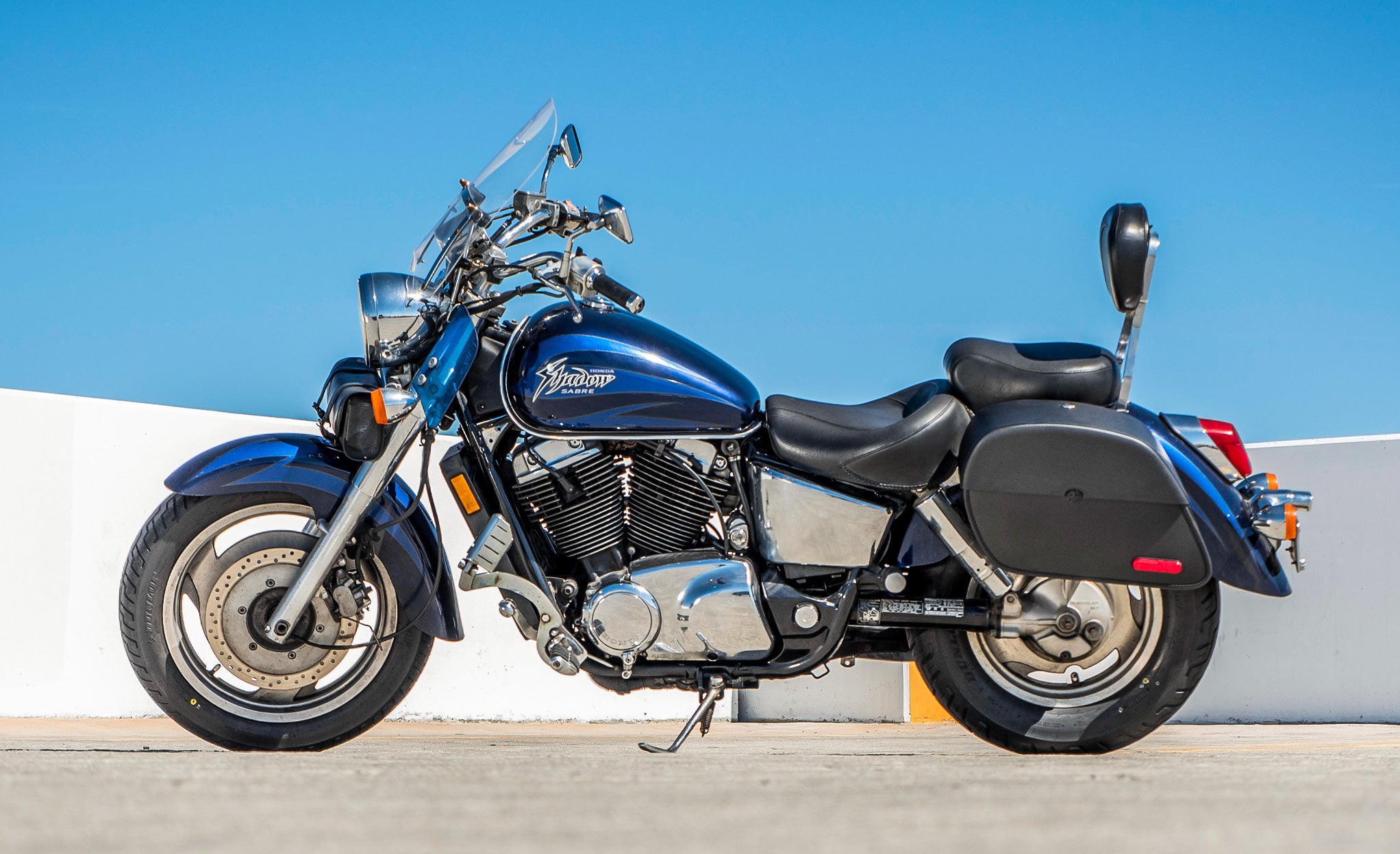 36L - Lamellar Raven Extra Large Honda Shadow 1100 Sabre Shock Cut-out Leather Covered Motorcycle Hard Saddlebags