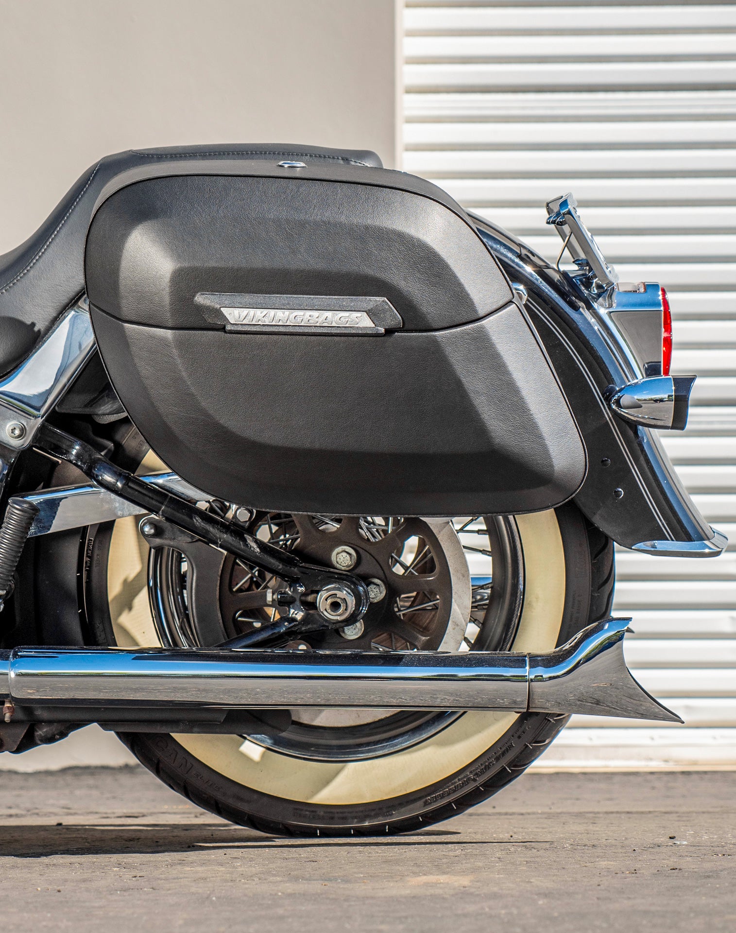 40L - Lamellar Raven Extra Large Leather Covered Motorcycle Hard Saddlebags for Harley Softail Deluxe FLSTN/I