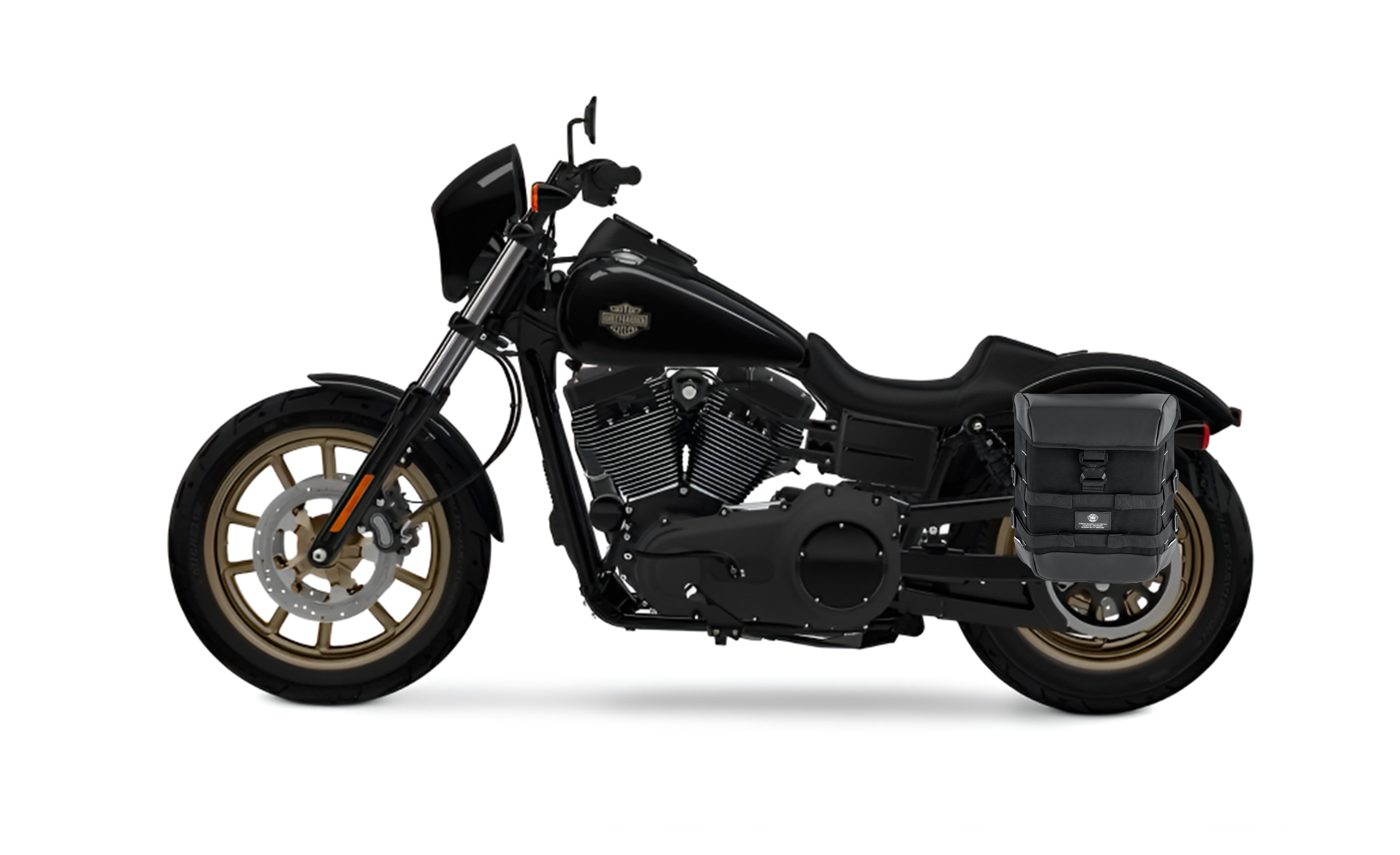 36L - Lamellar Raven Extra Large Shock Cutout Matte Hard Saddlebags for Harley Dyna Low Rider S FXDLS