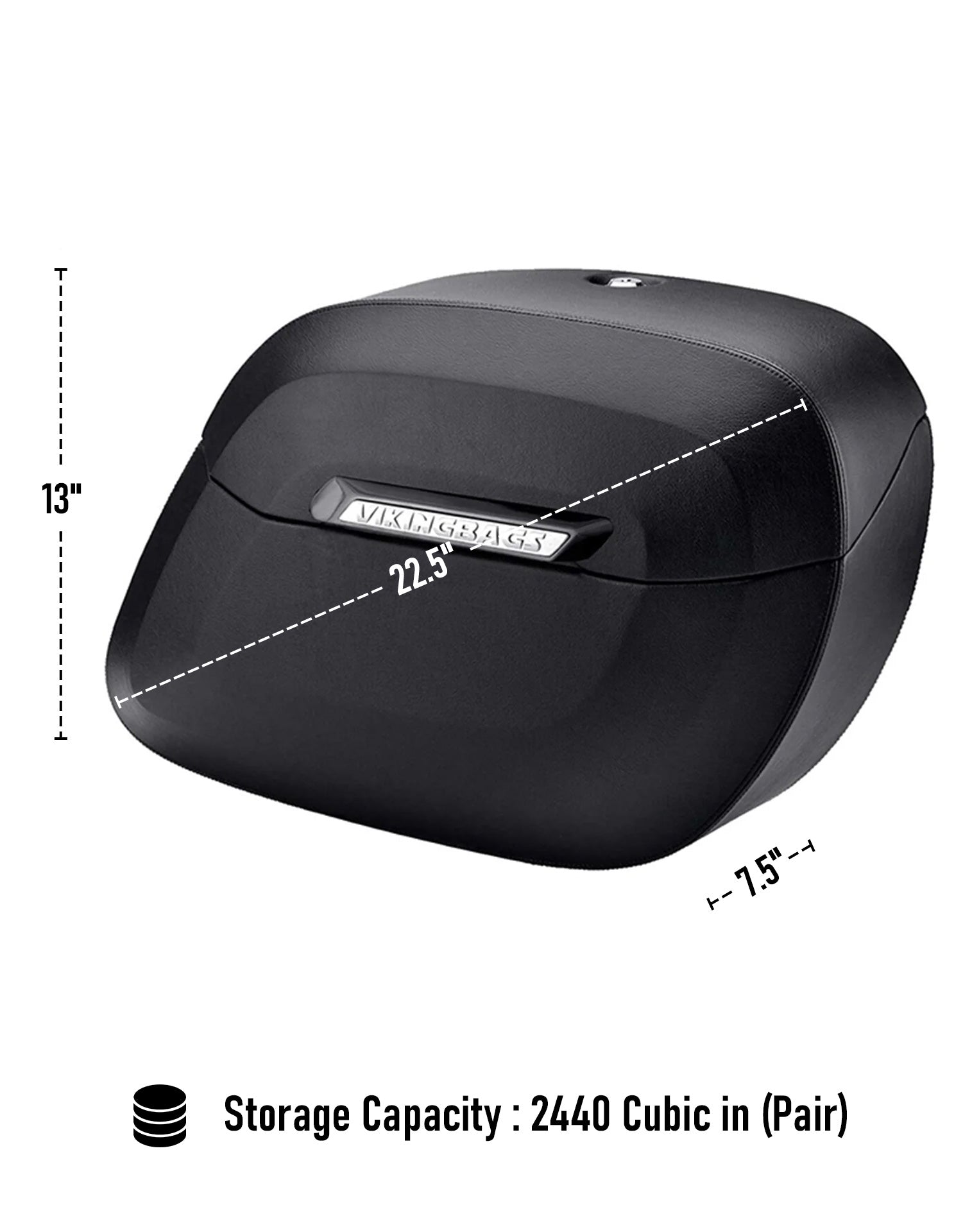 40L - Lamellar Raven Extra Large Victory Boardwalk Leather Covered Motorcycle Hard Saddlebags