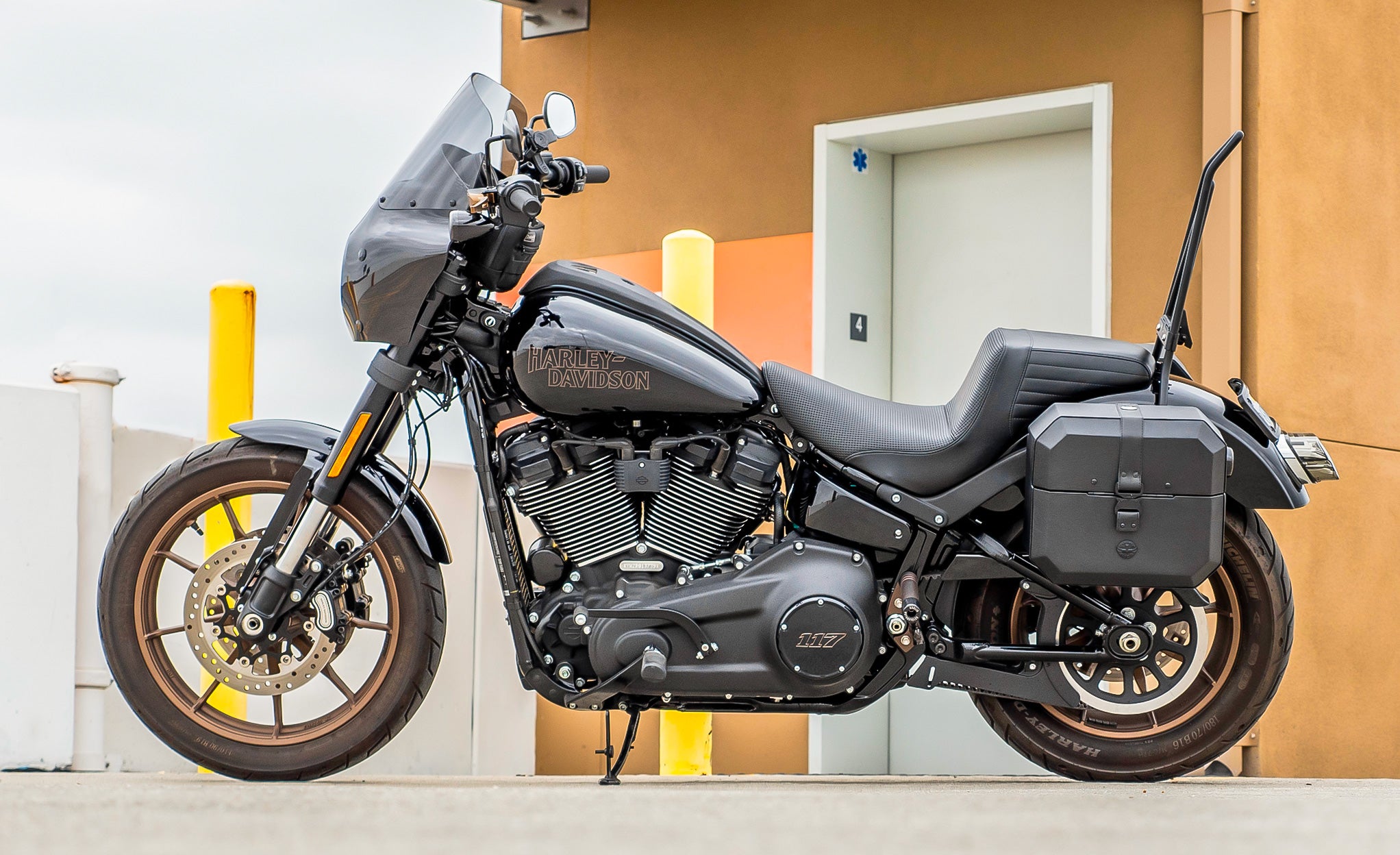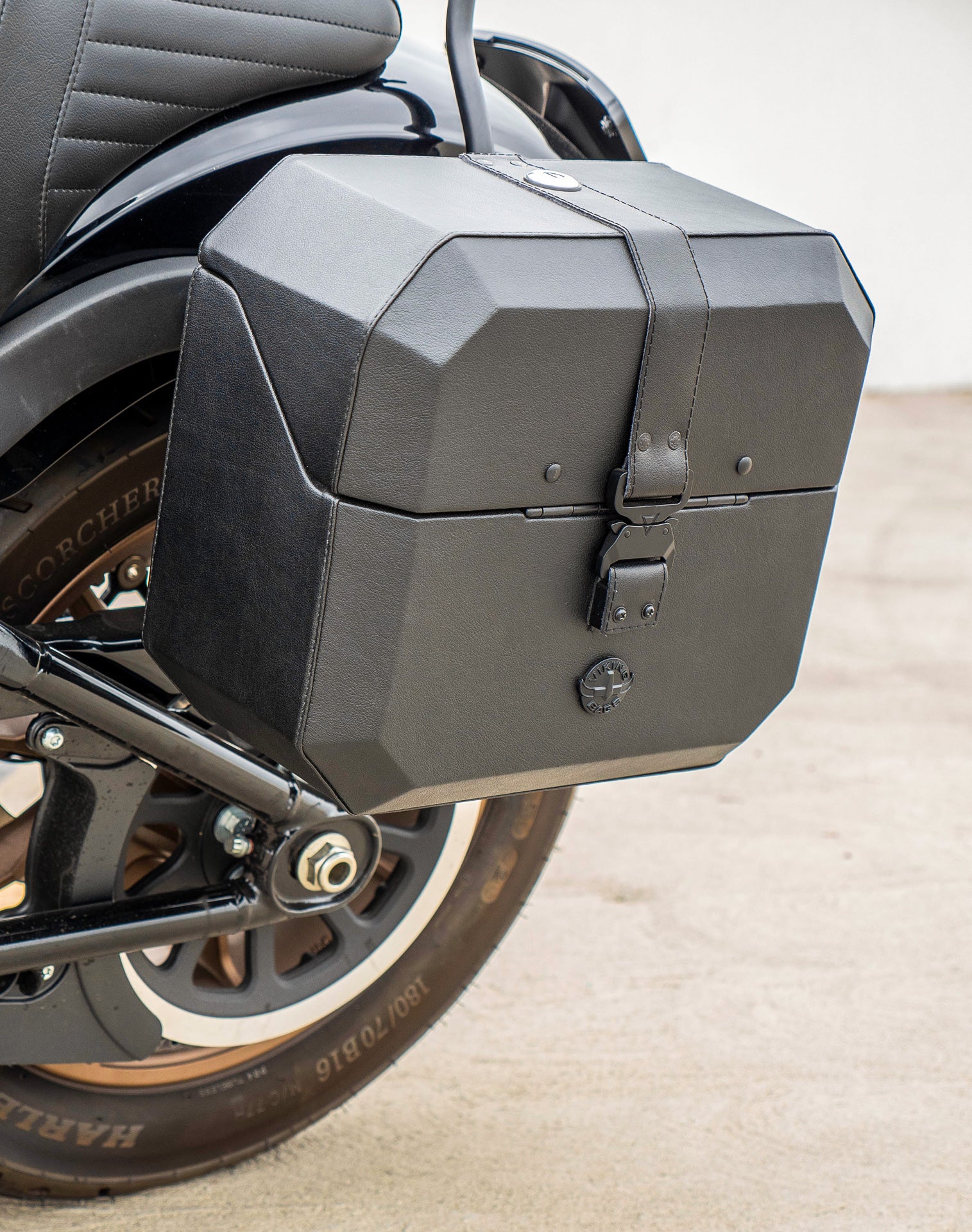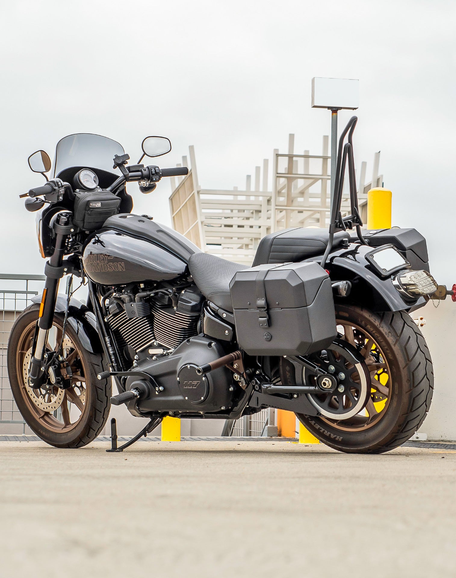 20L - Outlaw Quick-Mount Small Harley Softail Low Rider S FXLRS Leather Wrapped Hard Saddlebags