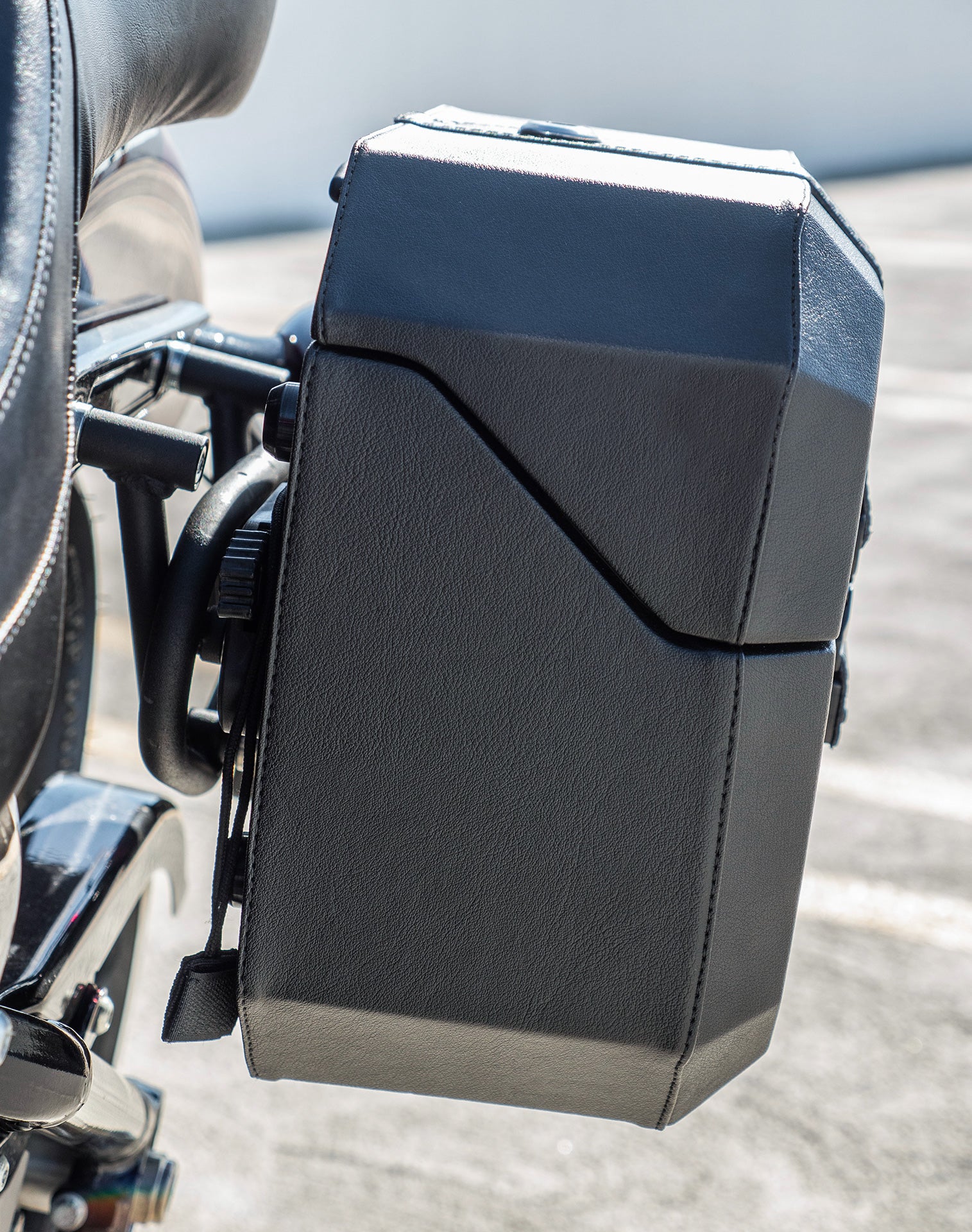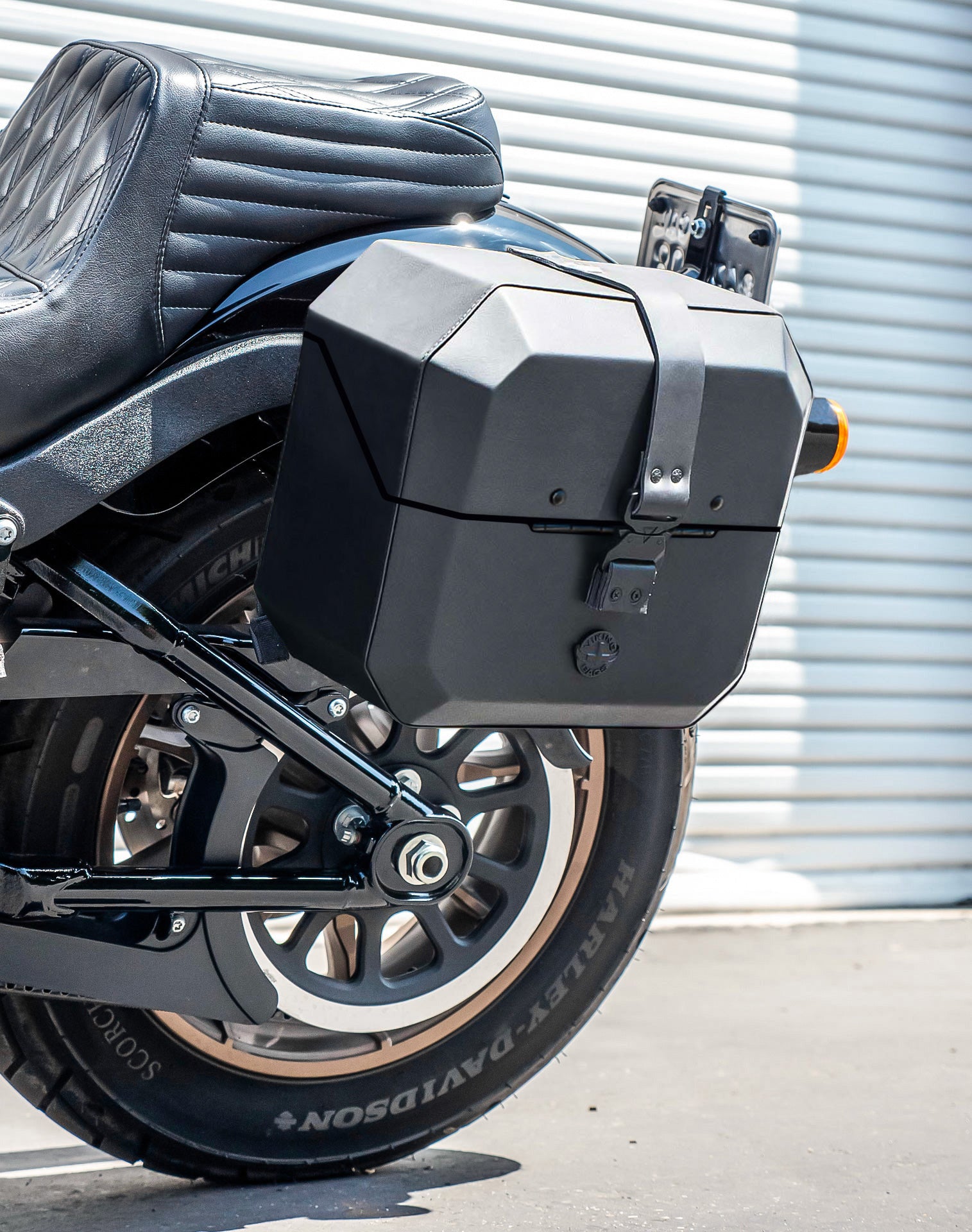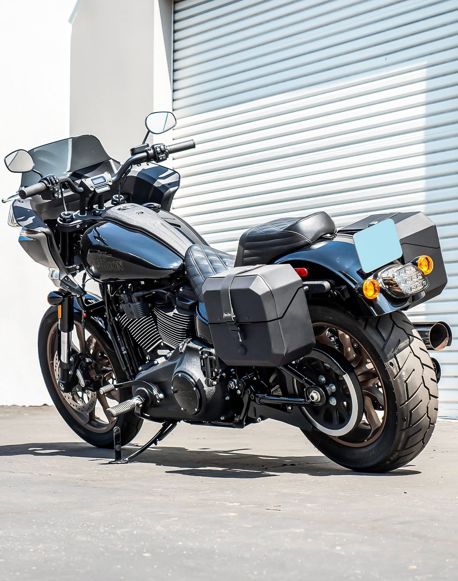 20L - Outlaw Quick-Mount Small Harley Softail Low Rider ST Leather Wrapped Hard Saddlebags