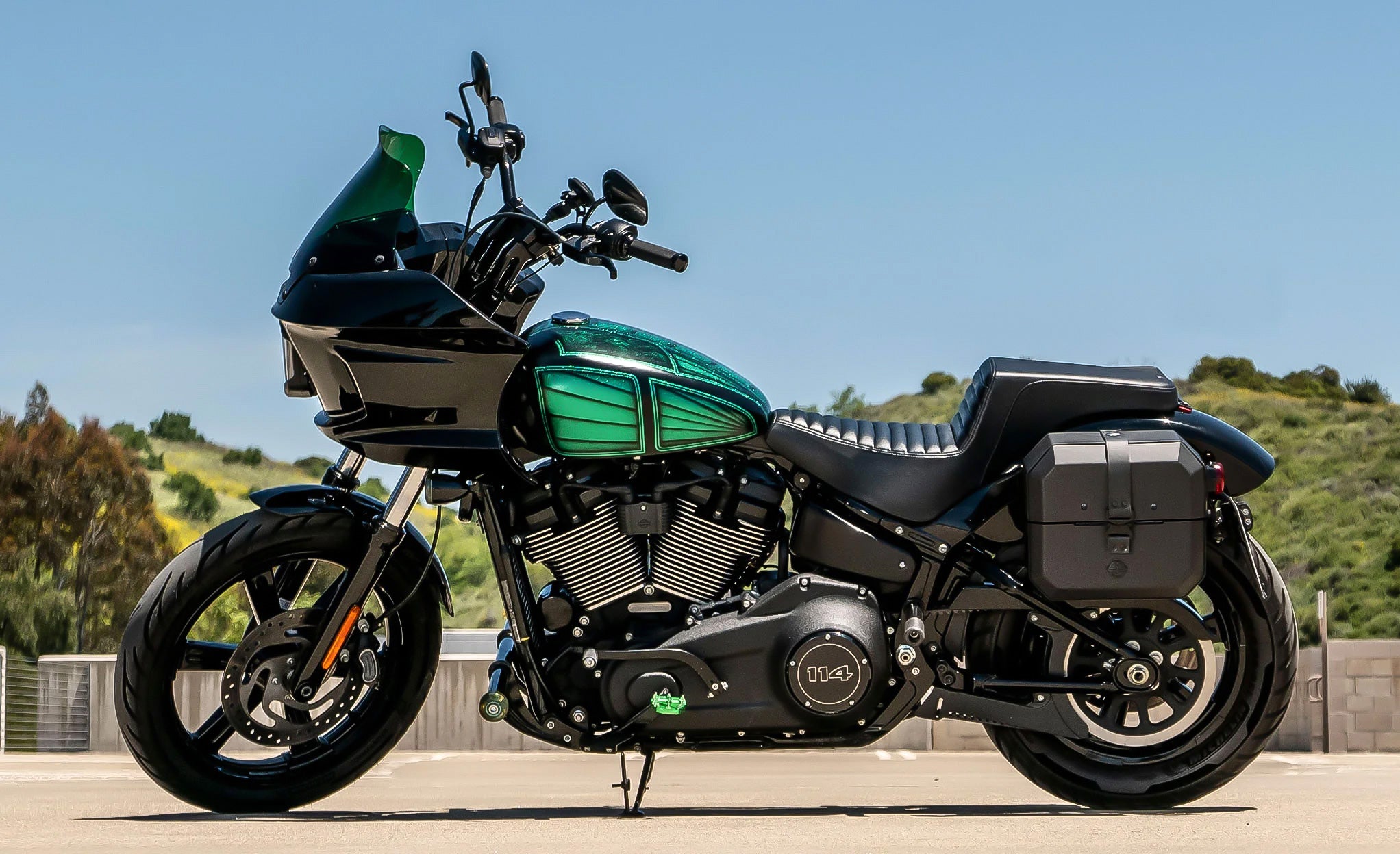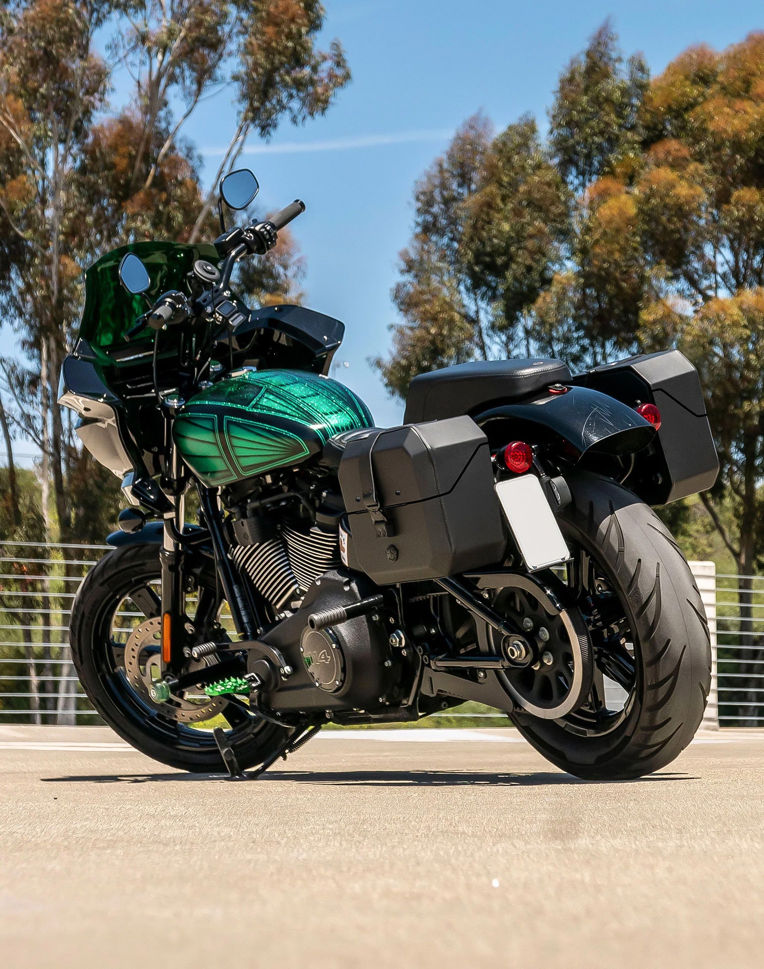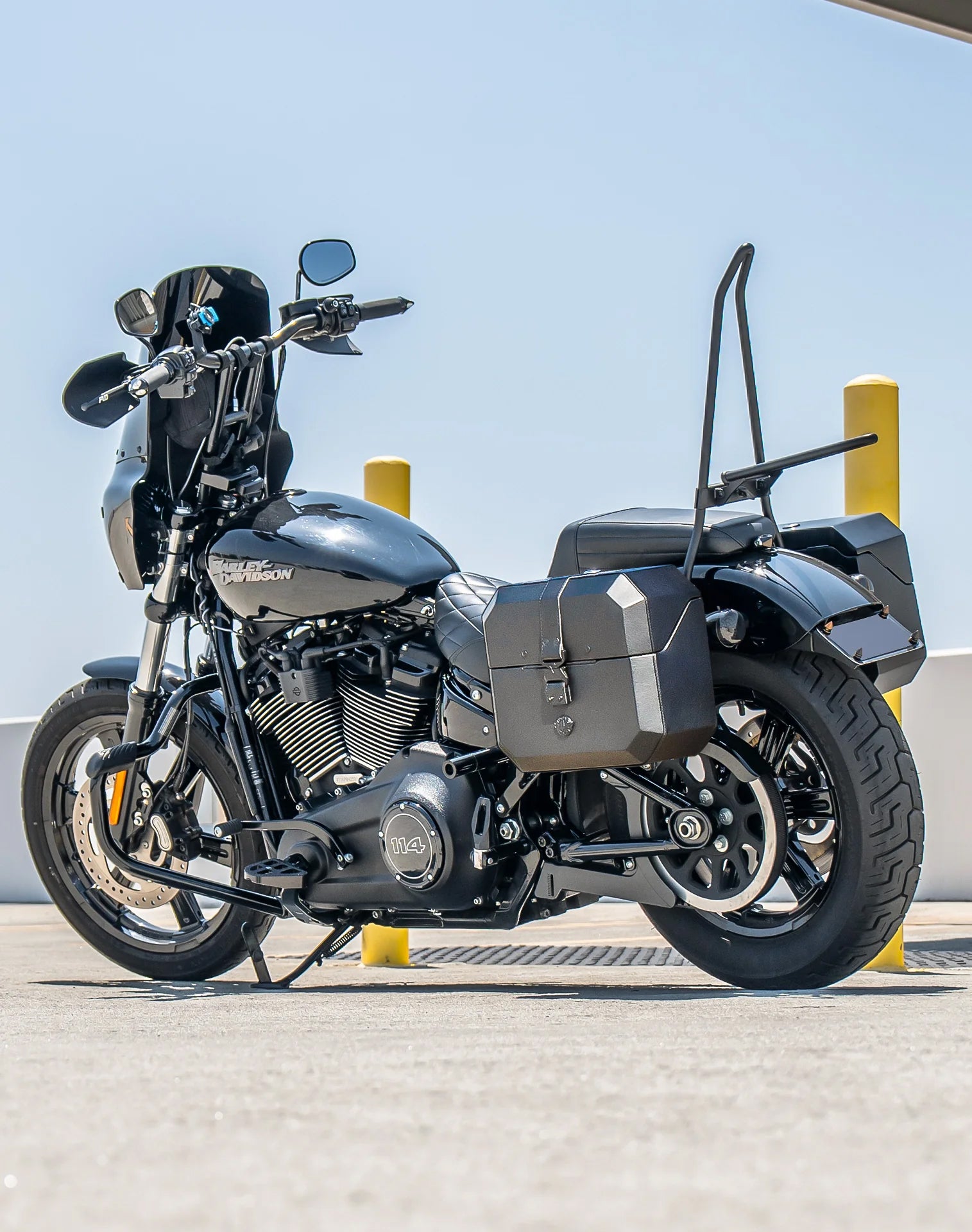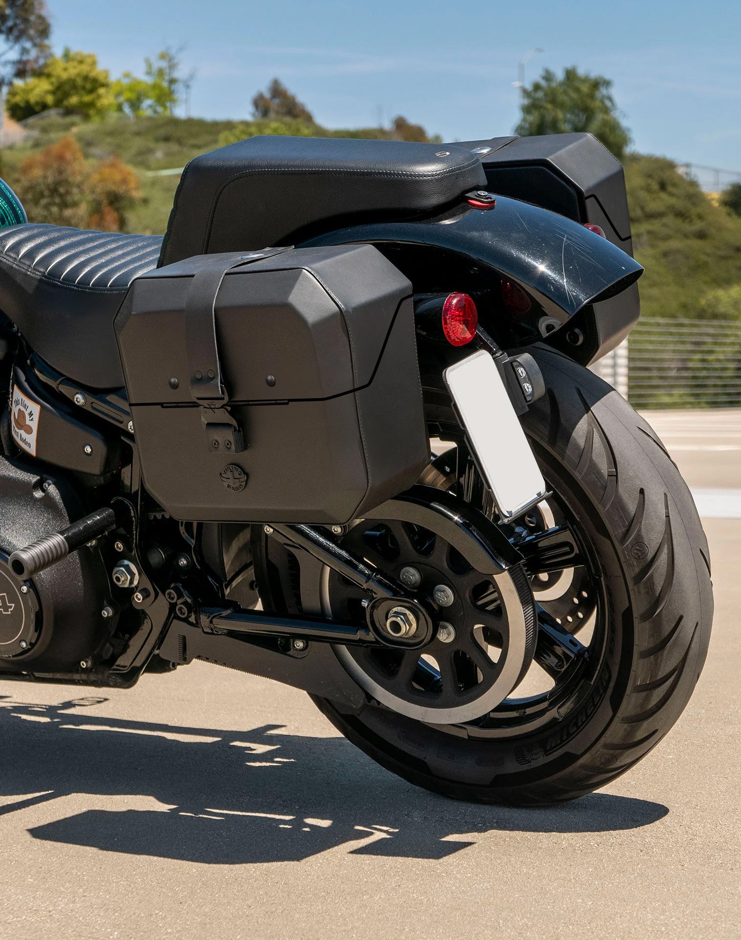 20L - Outlaw Quick-Mount Small Harley Softail Street Bob Leather Wrapped Hard Saddlebags