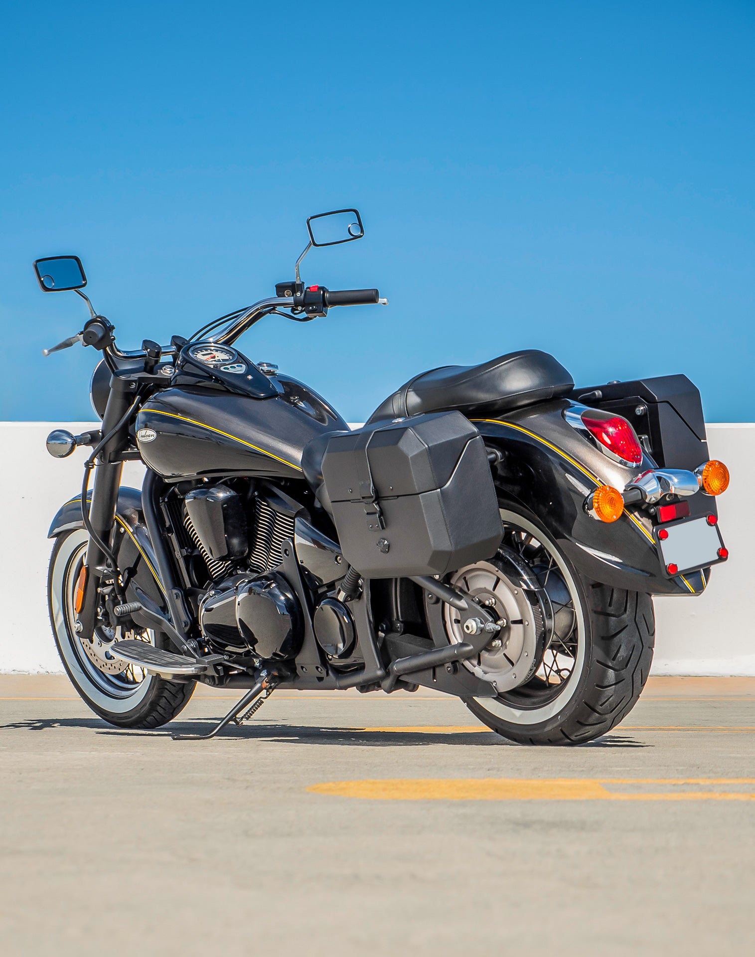 20L - Outlaw Quick-Mount Small Kawasaki Vulcan 900 Classic VN900 Leather Wrapped Hard Saddlebags