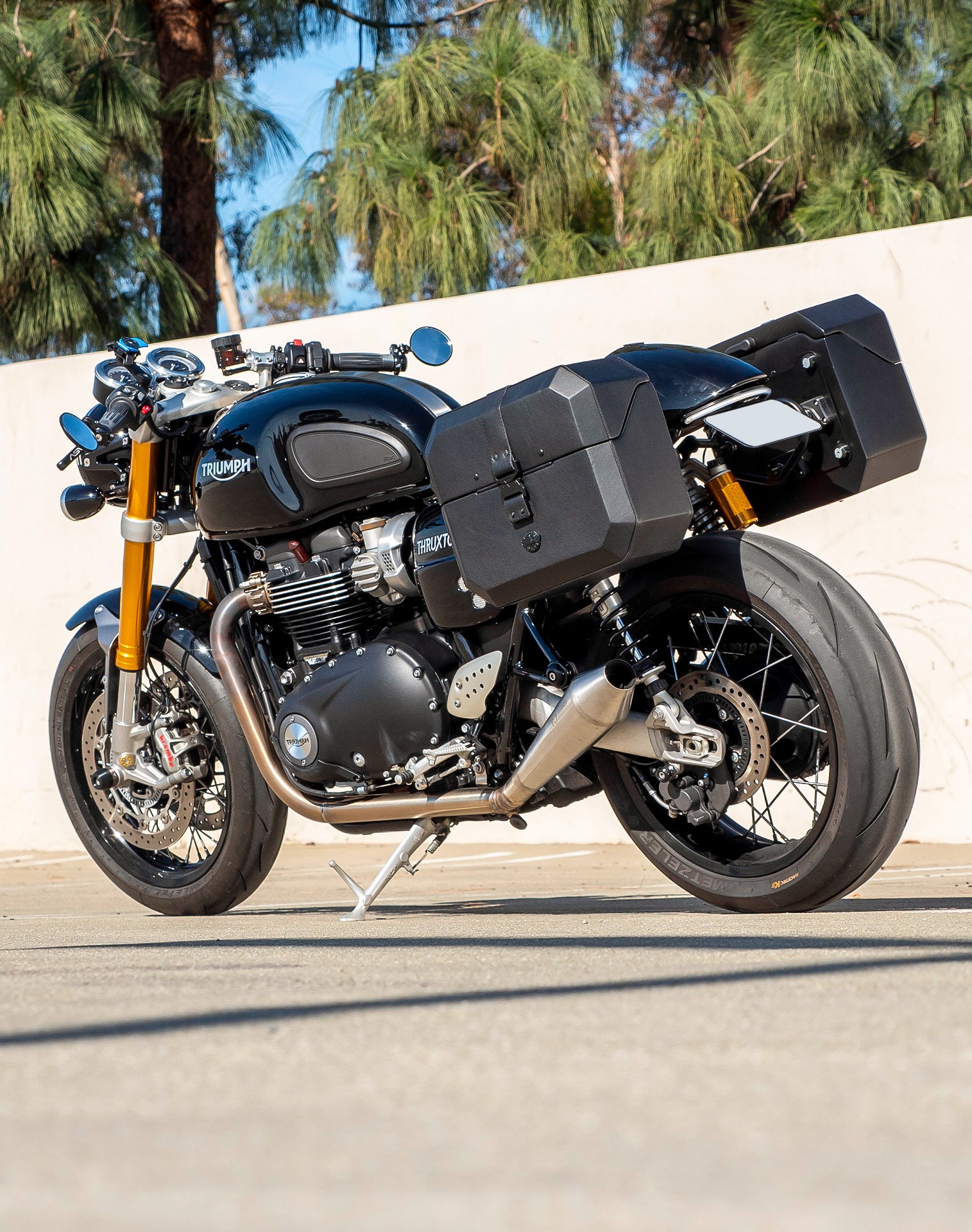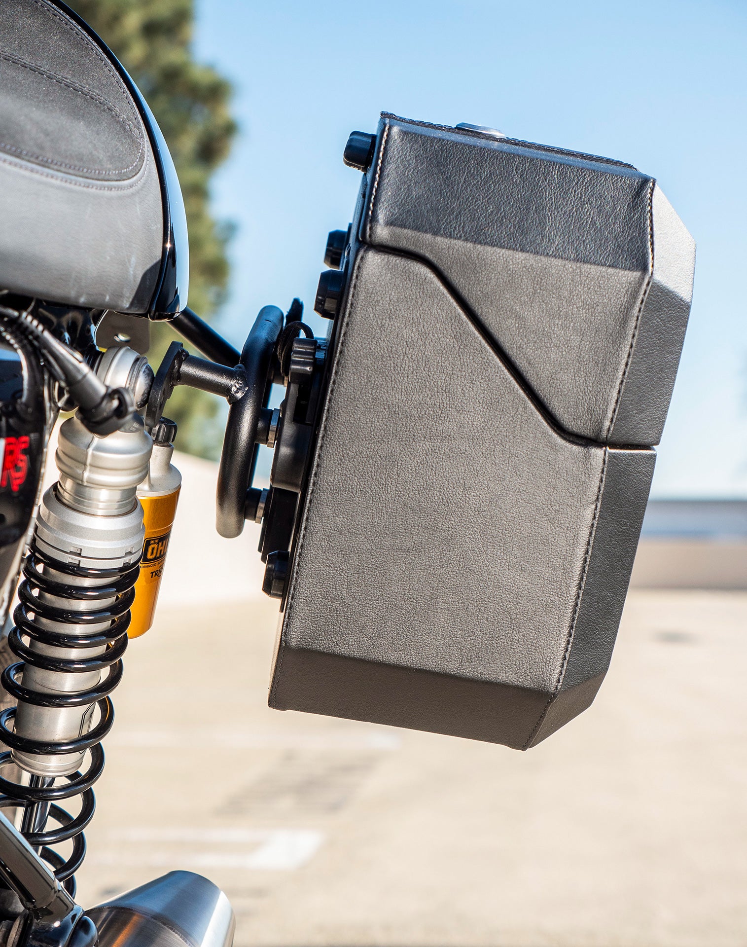 20L - Outlaw Quick-Mount Small Triumph Thruxton RS Leather Wrapped Hard Saddlebags