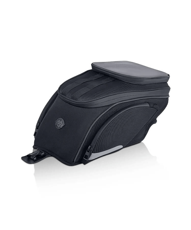 Our shape retaining sissy bar bags can be installed within minutes and are compatible with our foldable sissy bars.